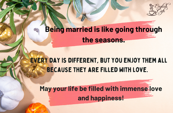 11. “Being married is like going through the seasons. Every day is different, but you enjoy them all because they are filled with love. May your life be filled with immense love and happiness!”