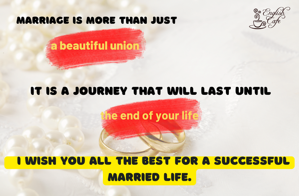 (Pernikahan lebih dari sekadar persatuan yang indah. Ini adalah sebuah perjalanan yang akan bertahan hingga akhir hidup anda. Saya berharap yang terbaik untuk kesuksesan kehidupan pernikahan kalian.)