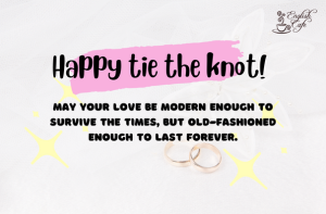 9. “Happy tie the knot! May your love be modern enough to survive the times, but old-fashioned enough to last forever”