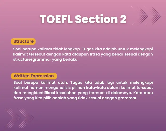 Salah satu komponen tes yang sering menjadi momok adalah bagian soal grammar TOEFL  atau disebut juga dengan section Structure & Written Expression. Sebenarnya bagian ini adalah sekumpulan soal dalam TOEFL yang bergelut langsung dengan pemahaman dan kemampuan penutur bahasa Inggris dalam menggunakan grammar (tata bahasa) yang tepat.