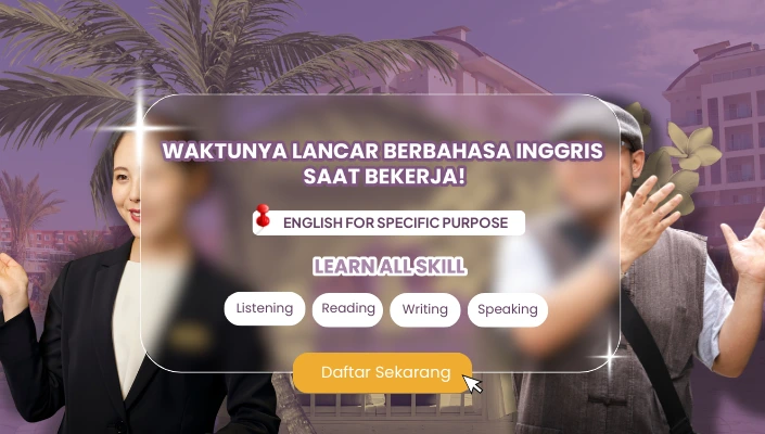 Untuk kamu para pelaku pariwisata, menguasai English for Tourism tentu akan menjadi suatu kewajiban. Hal itu karena agar nantinya saat kamu mulai terjun langsung dan handle tamu asing, kamu tidak akan kagok serta kebingungan akan apa yang harus kamu katakan atau lakukan. Nahh buat kamu yang masih belum tahu dan menguasai bahasa Inggris pariwisata, mengikuti program ESP (English for Specific Purpose) akan menjadi salah satu “alat tempur” terbaik.